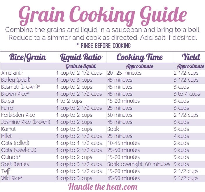 Add water. Depending on the grain, use appropriate amount. These are the grains we use regularly. There is a link to a chart below that has other grains, too.